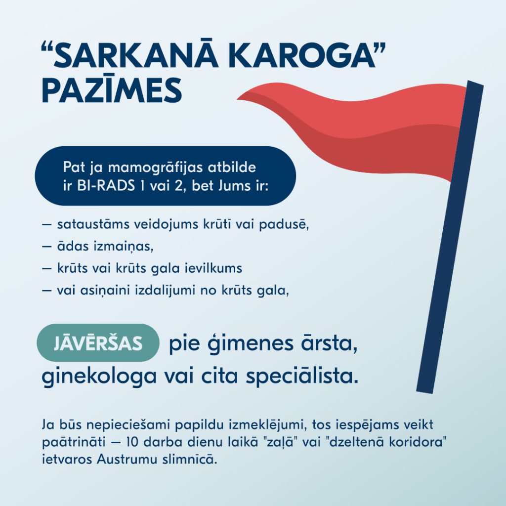 Pat ja mamogrāfijas skrīninga atbilde ir BI-RADS 1 vai 2, bet Jums ir: